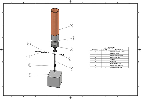 - Barra Vertical: Esta barra es el elemento de anclaje que se inserta en el concreto y se extiende hacia arriba para recibir el soporte de la Guadua.